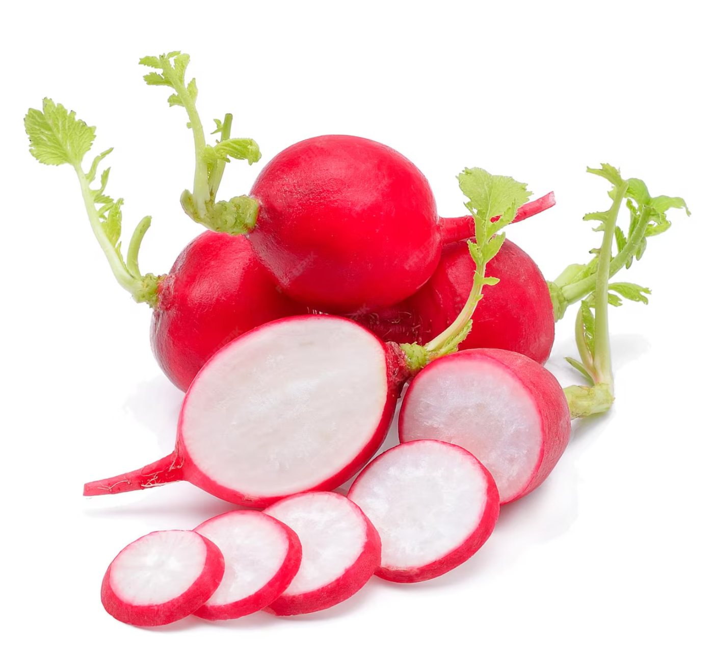 Description Crisp, fresh red radishes with vibrant red skin and white flesh. Perfect for salads, pickling, or garnish.